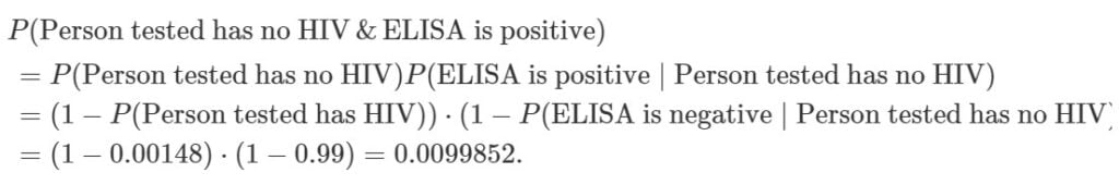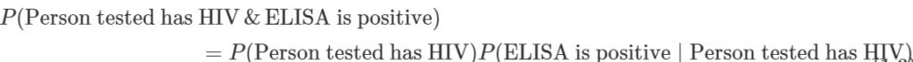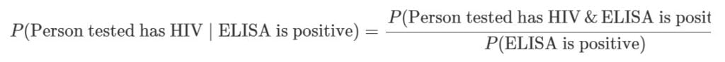 لكي تكون نتيجة اختبار شخص ما إيجابية وأن يكون مصابًا بفيروس نقص المناعة البشرية ، يجب أولاً أن يكون هذا الشخص مصابًا بفيروس نقص المناعة البشرية ثانيًا يكون الاختبار إيجابيًا. وكالاتي