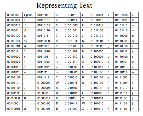 - يتطلب ASCII (الكود القياسي الأمريكي لتبادل المعلومات ، والذي يُنطق “ASK ee”) سبعة بتات لكل حرف.
