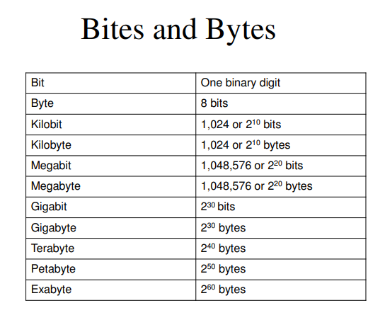 - المجموعة المكونة من ثمانية بتات تسمى بايت bytes وعادة ما يتم اختصارها كحرف كبير B.