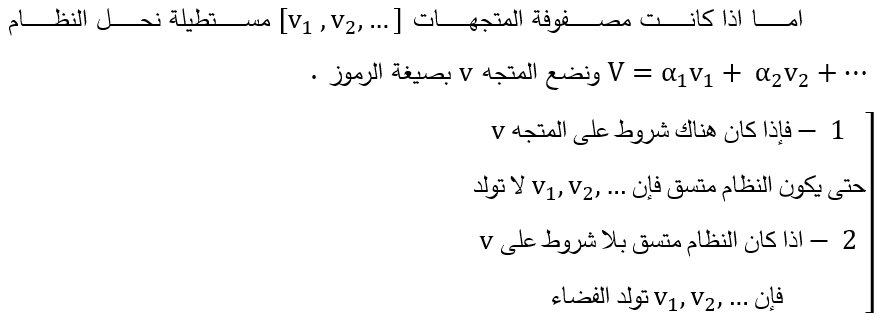 ولغرض اثبات ان التركيب الخطي v للمتجهات v1,v2,… نتبع الخطوات الاتية :