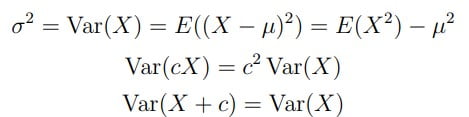 وتمثل القيمة المتوقعة لمربع الفرق بين X ووسطها الحسابي . كما يمكن ان نشتق كل من العلاقات الاتية من التباين :