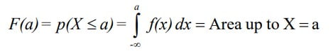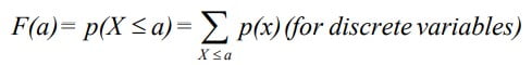 دالة التوزيع التراكمي Cumulative Distribution Function: او cdf احتمالية أن يأخذ متغير عشوائي X قيمة أقل من أو تساوي قيمة معينة يتم كتابتها غالبًا على أنها