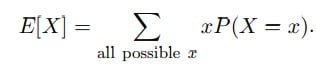 ويعني ذلك ، القيمة المتوقعة هي مجموع جميع القيم الممكنة لـ x مضروبًا في احتمالها P(X = x). مثال: القيمة المتوقعة لرمي النرد هي: