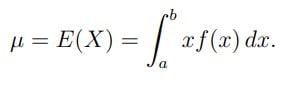 اذ ان f (x) هي دالة كثافة الاحتمال لـ X. إذا كانت f (x) تساوي 0 خارج الفترة المغلقة [a ، b] ، فإن التكامل هو نفسه