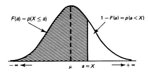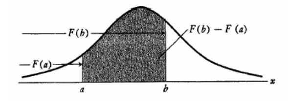 يمكن ملاحظة ذلك بسهولة إذا تم تذكر أن F (b) هو احتمال أن X تأخذ القيمة b أو أقل ، F(a) هو احتمال أن X يأخذ القيمة a أو أقل ؛ يجب أن يكون الاختلاف بينهما هو احتمال وجود قيمة بين a و b.