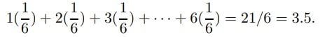لاحظ أن القيمة المتوقعة ليست من النتائج المحتملة: لا يمكنك رمي 3.5. ومع ذلك ، إذا كنت اردنا متوسط نتائج عدد كبير من الرميات ، فإن النتيجة تقترب من 3.5.(حسب نظرية الحد المركزية)