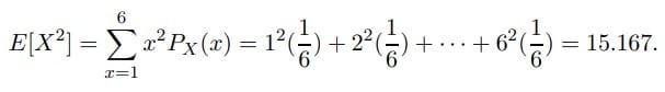 Var [X] = E [X2] – (E [X])2. وجدنا سابقًا أن E [X] = 3.5 ، لذا علينا الآن إيجاد E [X2]. كالاتي :