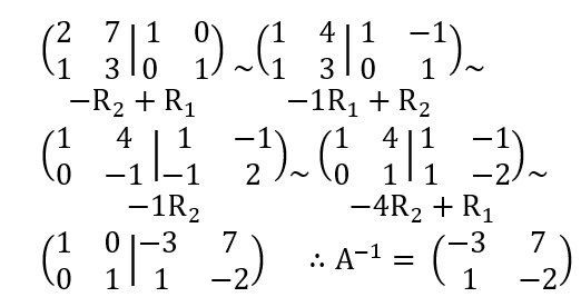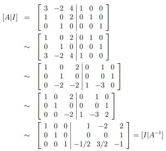 مثال(1) : معكوس المصفوفة A باستعمال r.r.e.f هي :