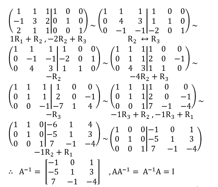 مثال (2) : معكوس المصفوفة A باستعمال طريقة r.r.e.f هي :