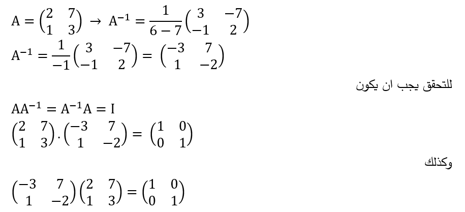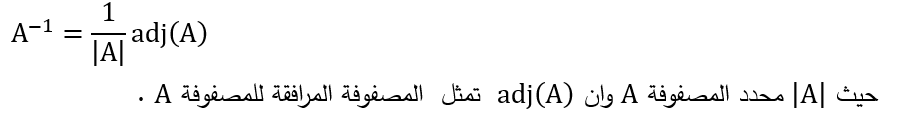 مثال (4) : معكوس المصفوفة A بطريقة القانون هي :