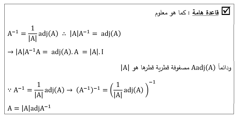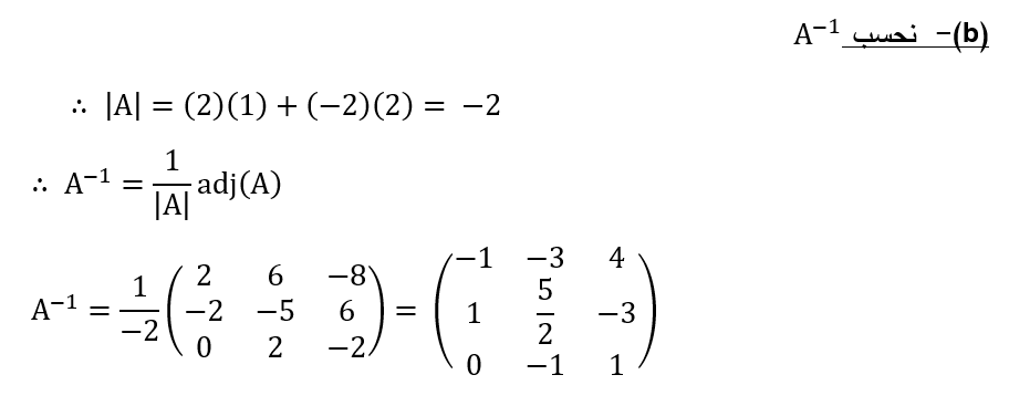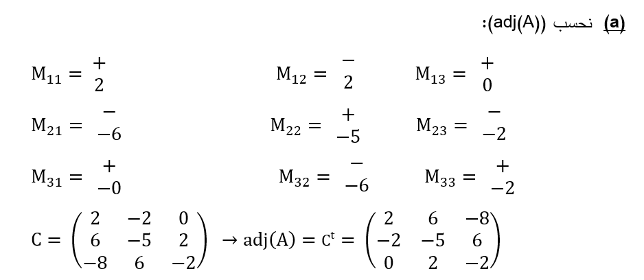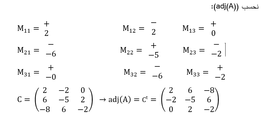 – احسب adj(A) – احسب A-1 باستخدام صيغة القانون ؟