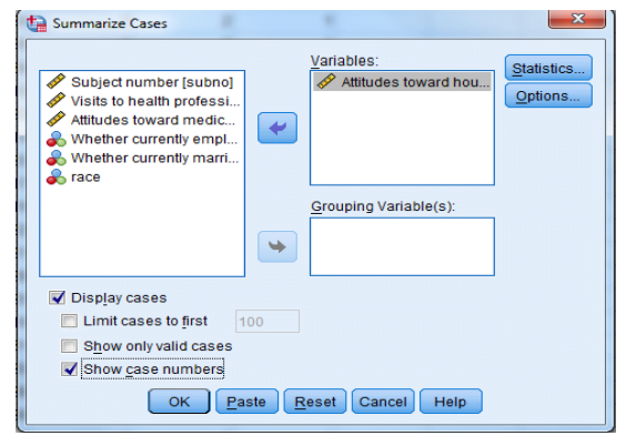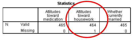 -من قائمة “Statistics” ، سترى أن المواقف تجاه الأعمال المنزلية (atthouse) “لها قيمة واحدة مفقودة.