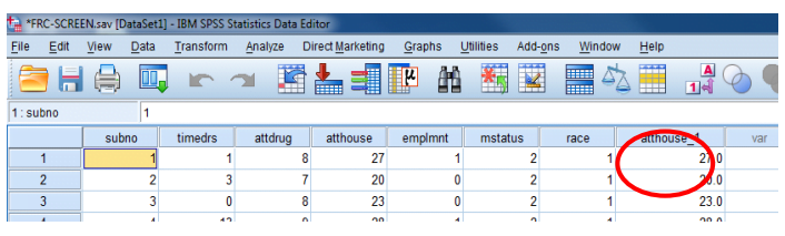 -انقر خارج صفحة النتائج ولاحظ إنشاء عمود جديد (متغير) يسمى “atthouse_1” باعتباره العمود الأخير في واجهة عرض البيانات Data View.