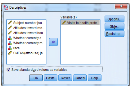-انقر فوق المربع الموجود أسفل الشاشة الذي يشير إلى حفظ القيم الموحدة كمتغيرات Save standardized values as variables
