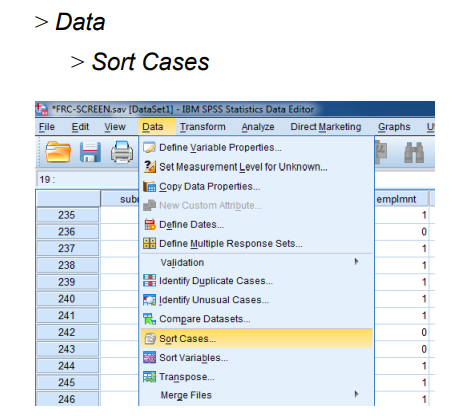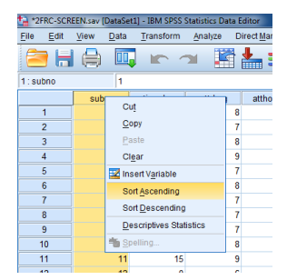 يمكننا أيضًا الفرز عن طريق تحريك المؤشر فوق متغير المراد معالجته (على سبيل المثال ، subno) ، والنقر بزر الماوس الأيمن على الماوس والنقر على فرز تصاعديAscending :