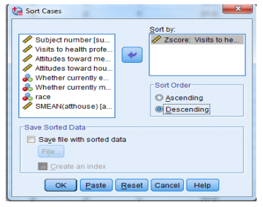 -يمكننا أيضًا الفرز عن طريق تحريك المؤشر فوق المتغير المعني (على سبيل المثال ، Ztimedrs) ، والنقر بزر الماوس الأيمن على الماوس والنقر على Sort Descending