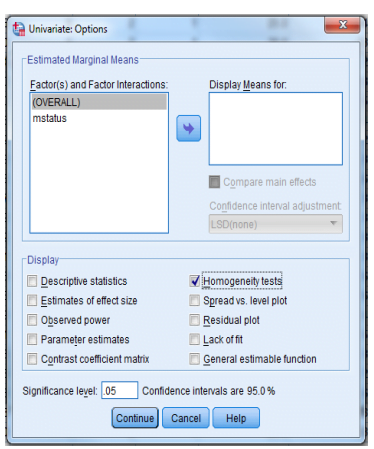 -اضغط على Homogeneity tests في Display box