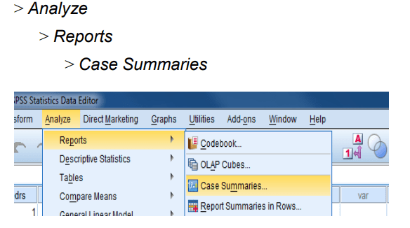 نستعرض مثال باستخدام التوجيهات في برنامج SPSS Ver.26 كما في أدناه: