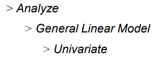 الافتراضات أحادية المتغير (Univariate Assumptions) : افتراضات الحالة الطبيعية normality والاستقلالية independence وتجانس التباين homogeneity of variance. عند استيفاء الافتراضات ، فإنها تنص على أن التوزيعات في المجموعات السكانية التي تم اختيار العينات منها لها نفس التوزيع والاوساط الحسابية والتباينات. بمعنى آخر ، هم نفس السكان ؛ الفروق على المتغير التابع متساوية عبر المجموعة.