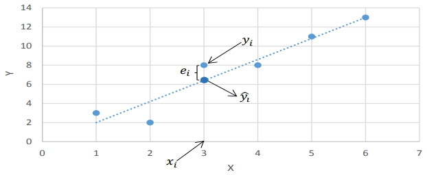 ليكن لديك الأزواج (xi، yi). ولتكن y^i القيمة “المتوقعة” لـ yi المرتبطة بـ xi إذا تم استعمال العلاقة الخطية المناسبة. نحدد ei = yi – yˆi على أنه البواقي (Residuals) ويمثل “الخطأ Error” المتضمن.