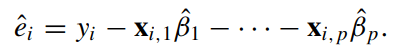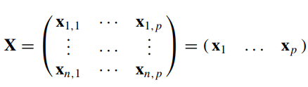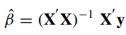 حيث xj هو متجه عمودي يحتوي على المشاهدة n في المتغير j اذ ان ، j = 1 ، … ، n. لنفرتض أن X لها رتبة كاملة (Full rank) ، أي أنه لا يمكن كتابة أي عمود في X كمجموعة خطية من الأعمدة الأخرى. بعد ذلك ، يُعطى مقدر المربعات الصغرى ^β من خلال :