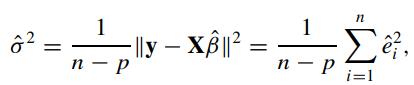 حيث σ2 هو تباين حد الضوضاء (noise) . مقدر σ2 يساوي:
