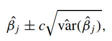 حيث τ2j هو العنصر j على قطري المصفوفة 1-(X X) . يتم الآن الحصول على حد الثقة لـ βj بأخذ مقدر المربعات الصغرى β^j ± :