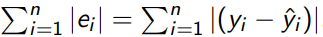 إذا تم اعتبار زيادة او انخفاض التوقعات غير المرغوب فيها بنفس المقدار، فسيكون الهدف هو ملاءمة خط لجعل الخطأ المطلق صغيرًا قدر الإمكان ، ولكن مع ملاحظة أن العينة تحتوي على عدد n من المشاهدات (Observation) وبالنظر إلى العلاقة غير الدقيقة ، لن يكون من الممكن تصغير كل ei في آن واحد.