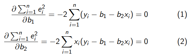 المعادلات (1) و (2) تسمى المعادلات الطبيعية (Normal Equation). يؤدي حل المعادلتين الطبيعيتين إلى: